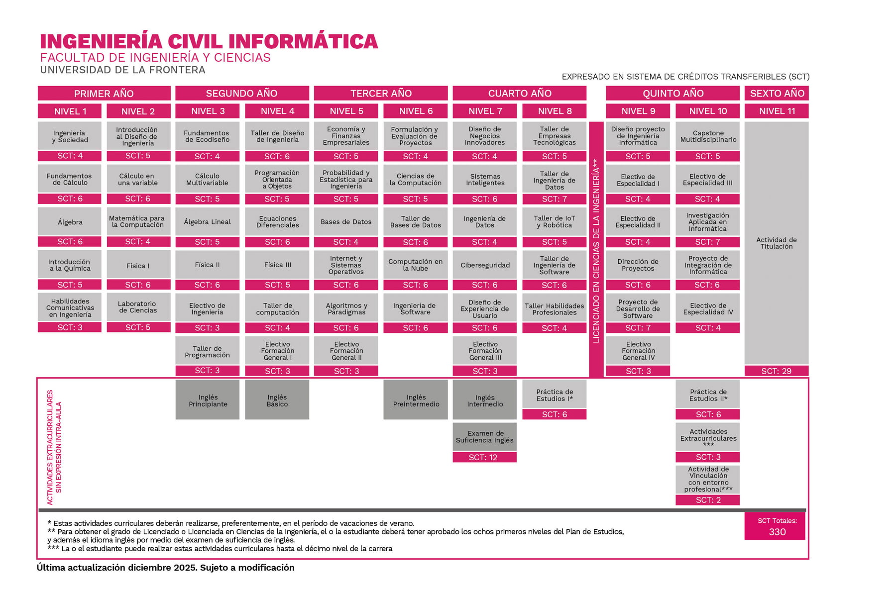 El Ingeniero o la Ingeniera Civil Informático de la Universidad de La Frontera es un o una profesional del área de las tecnologías de la información y comunicación con capacidades para desempeñarse en los ámbitos de diseño e implementación de soluciones informáticas de vanguardia, ingeniería de software e ingeniería de datos, con la finalidad de contribuir al desarrollo económico y social del país.